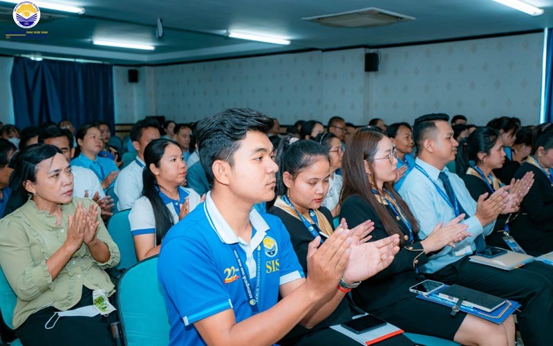កិច្ចប្រជុំជាមួយលោកគ្រូ អ្នកគ្រូ គ្រប់កម្រិតថ្នាក់ ស្តីអំពីផែនការអនុវត្តក្នុងវិស័យអប់រំសម្រាប់បវេសនកាលឆ្នាំសិក្សាថ្មី ២០២៥-២០២៦ ក្រោមអធិបតីភាពរបស់ លោកស្រីបណ្ឌិត ងឿន ផល្លីនពោធីតា នាយិកាសាលាអន្តរជាតិ អេស អាយ អេស (SIS)។